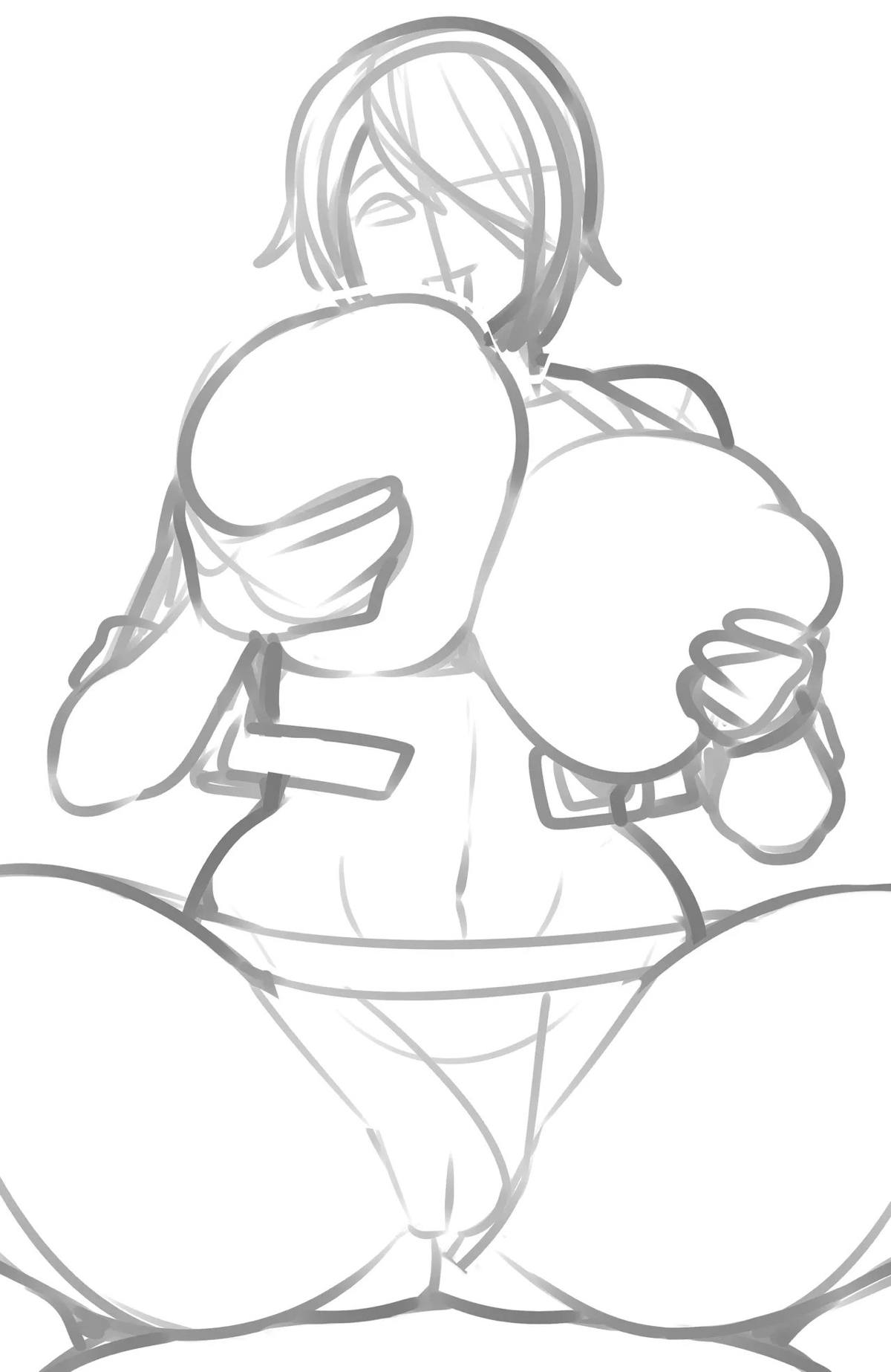 ショートで巨乳な格闘美女 + 格闘少女
