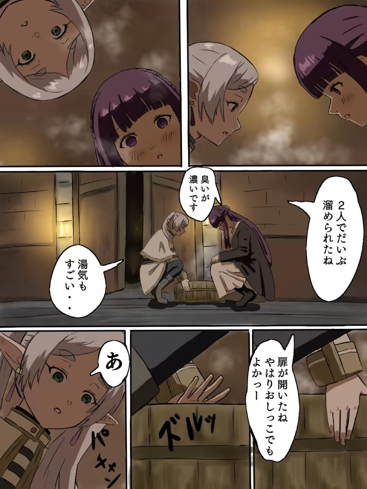 木桶におしっこを溜めるフリーレンとフェルン
